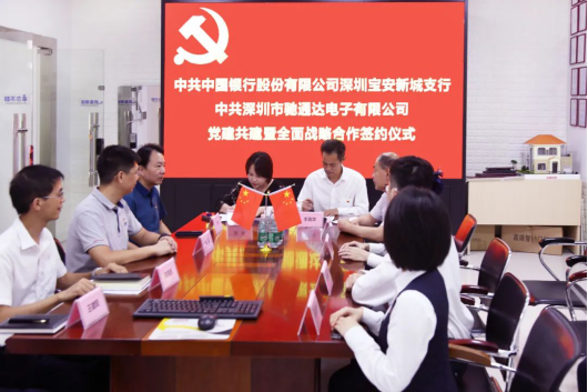 为深入贯彻落实党中央和上级党组织相关精神,充分发挥党组织的战斗堡垒作用和中共党员先锋模范作用,深化银企合作共同提高,2020年8月12日,中国银行股份有限公司深圳新城支行与开云手机登录入口党支部隆重举行党建结对共建暨全面战略合作签约仪式。出席本次签约仪式的中行领导有:宝安管辖支行钟俊副行长,新城支行李克华行长,新城支行陈莉副行长,新城支行黄程林副行长等;出席本次签约仪式的驰通达集团领导有:集团董事长、南山区人大代表万腾驰,集团行政总裁、党支部书记莫蓉,轮值ceo、法人代表熊剑,财务部经理陈晓东等支委成员。中行领导对本次党建共建活动给予高度重视和大力支持,并对受疫情影响导致部分出口业务受阻的企业给予大力的授信额度支持,对驰通达集团日常经营和平稳发展提供了很大的帮助,此行深入基层企业传经送宝更是难能可贵,万腾驰董事长对此表示大加赞赏和感谢!