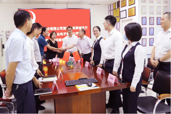 活动期间,中行领导一行在驰通达集团董事长万腾驰陪同下,实地参观考察了驰通达党建文化建设长廊和智慧安全防护演示厅,通过学习观摩与双向交流,进一步统一了双方党员干部的思想认识,更加深刻理解企业文化的内涵。中国银行深圳宝安支行钟俊副行长对驰通达党支部建设成果给予了充分肯定,对驰通达很早就获得深圳市、区、街道“两新工委先进基层党组织、街道先进基层党组织”等众多荣誉表示赞赏。驰通达集团董事长万腾驰表示,驰通达党支部已成为教育党员职工“争先创优”的重要阵地,驰通达始终坚持“把党员培养成骨干、把骨干发展为党员”的用人理念,让驰通达党员和企业员工时刻感受到党的温暖。此举与中国银行深圳新城支行党支部的理念不谋而合,作为党建结对共建单位,双方约定将以此次联创为契机,加强党组织与党员沟通交流,寻求价值认同、资源共享、优势互补,促进银企构建战略伙伴关系,在国外疫情防控持续的情况下,对结对共建单位给予授信额度支持,有效服务银企转型创新发展,实现合作共赢,进一步夯实党建工作基础。