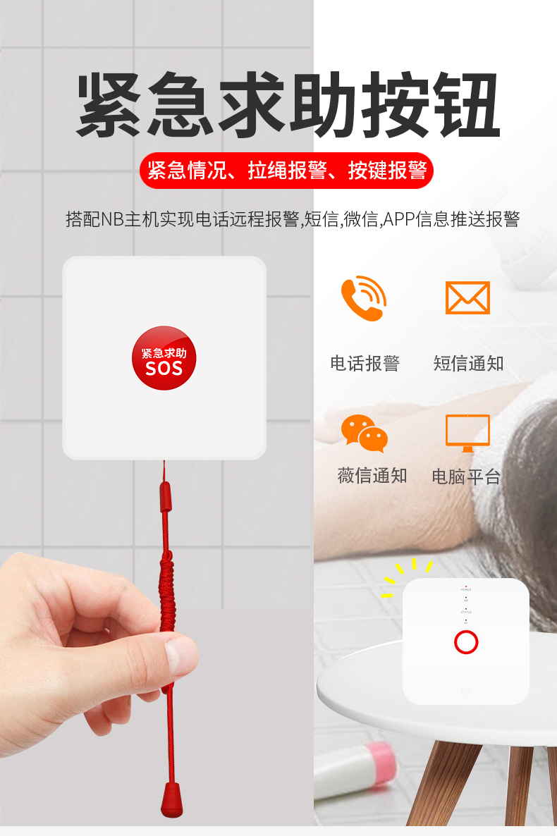 应用:适用于工厂、医院、小区和养老院等场所的紧急求助。